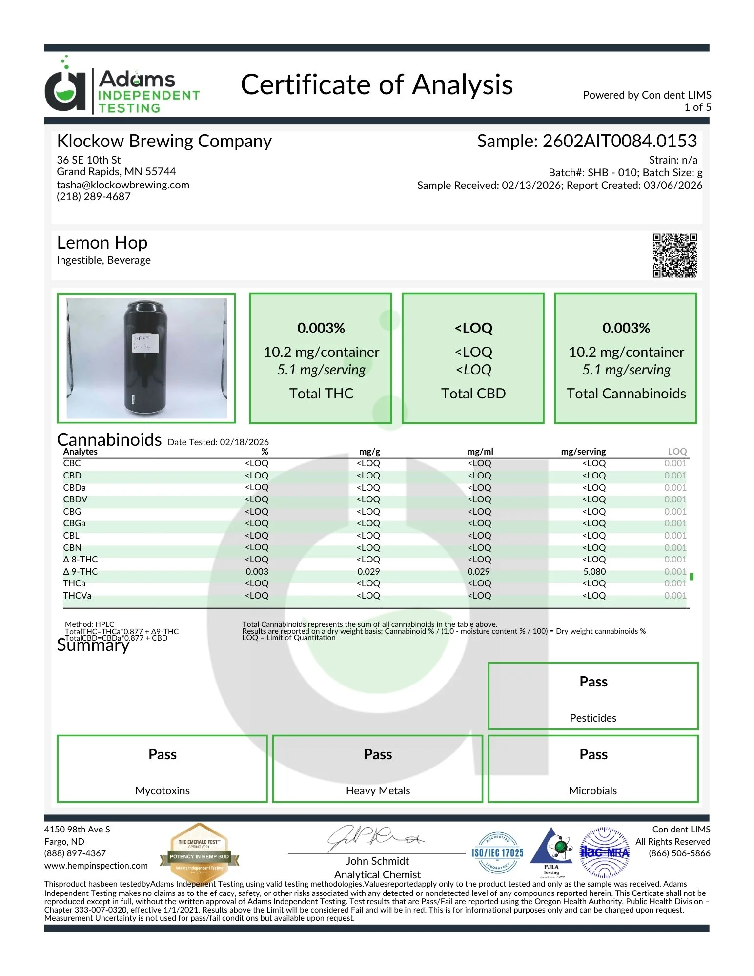 check your can for the batch ID STARTING WITH SHB- & see the Certificate of analysis below!
